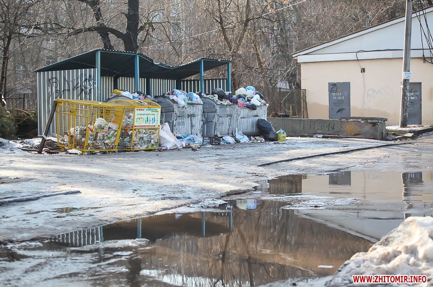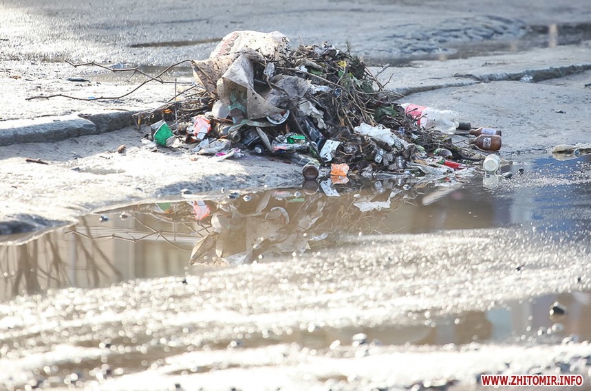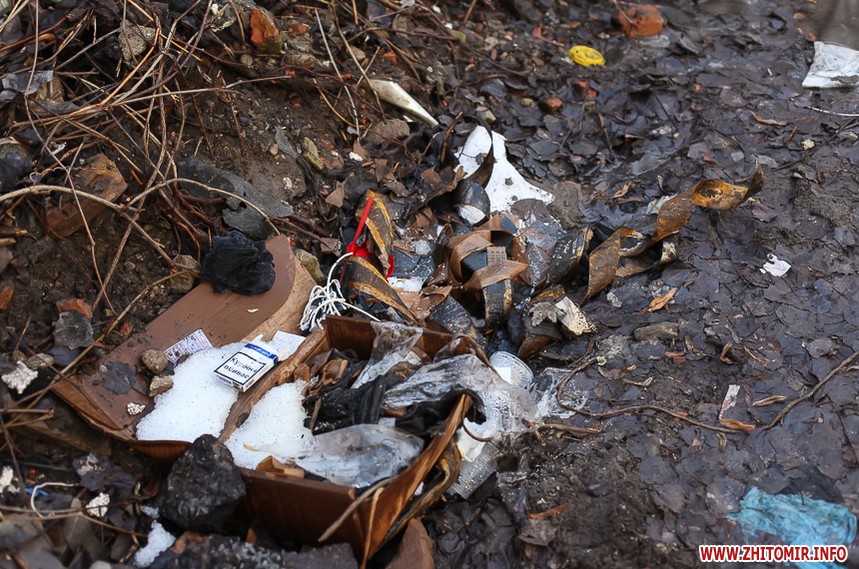 Перші дні лютого виявилися неочікувано теплими і по-весняному сонячними. Стрімке танення снігу відкрило поглядам житомирян сміття, яке накопичувалося разом з кучугурами і яке комунальники не поспішають прибирати. Окурки, папірці, фекалії тварин повсюди, навіть у центрі міста.