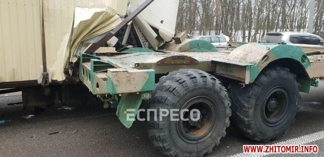 На виїзді з Києва сталася ДТП за участю КрАЗ однієї з військових частин Житомирської області.