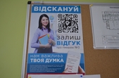 Для того, щоб оцінити обслуговування в закладі загалом, слід відсканувати код з наліпки, яка знаходиться у вестибюлі. Відсканувати такі коди з наліпок можна за допомогою спеціального сканеру, який знаходиться в програмі Viber або Facebook на Вашому смартфоні, або через камеру iPhone (iOS 11).