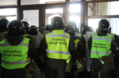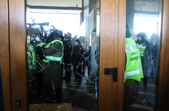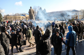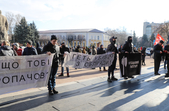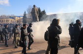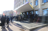 Залишивши сесійну залу та переставши штурмувати стіни ОДА, молоді хлопці пішли до громадської приймальні обласної організації партії «Батьківщина» на вулиці Леха Качинського: кидали димові шашки, а також залишили на огорожі приймальні плакат «Кропачова на нари!».