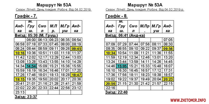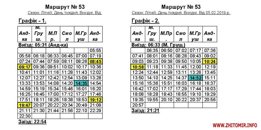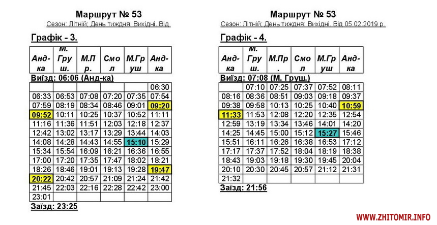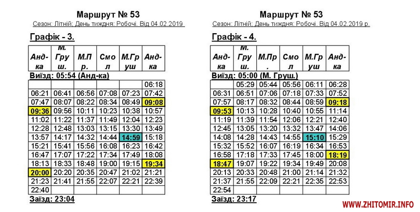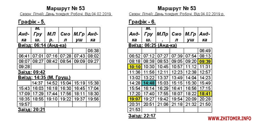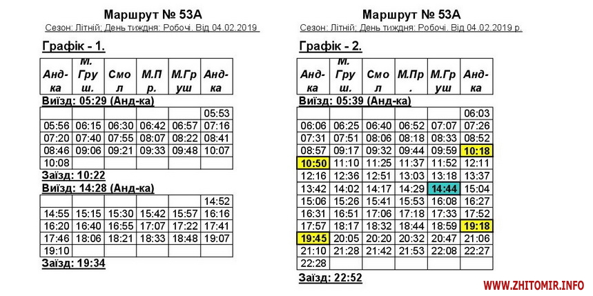 «Змінюється графік руху автобусів 53 та 53А у зв’язку зі збільшенням одиниць техніки. Раніше було по 7 автобусів на кожному маршруті, тепер буде по 8. Загалом у робочий день буде ходити 16 машин», - пояснив начальник відділу безпеки руху КП «ЖТТУ» Руслан Галіцький.
