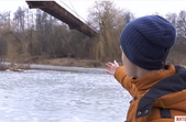 У соцмережу потрапило відео, як підліток з Коростеня, ризикуючи життям, витягає пса, який провалився під лід. Хлопець спочатку намагався дістати тварину палицею, а потім підповз до краю криги і схопив руками.
