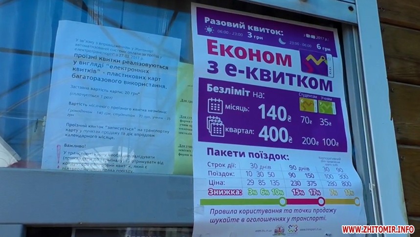 Як повідомляв Житомир.info, у червні 2018 року в КП «Житомиртранс» розповіли про розширення мережі точок продажу електронного квитка на зупинках та анонсували можливість поповнення е-квитка через мережу терміналів самообслуговування та Інтернет.