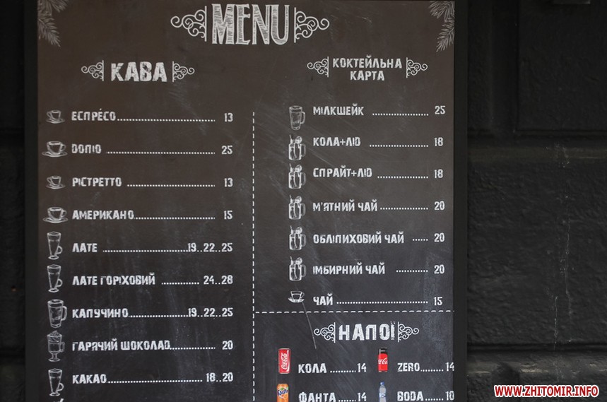 Вже традиційно на початку року Житомир.info робить фотоогляд вартості кави в центрі міста.