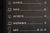 За рік кава ще трошки подорожчала: зараз середня ціна еспресо чи американо – 9-10 грн, але можна знайти й за 6-7 гривень. Напої, які варить професійний бариста, коштують дорожче. За вершки чи молоко доведеться доплатити 2-3 гривні. До речі, в кількох закладах почали використовувати «базарний прийом», вказуючи ціну з копійками, наприклад – 10 грн 99 коп за еспресо. Найбільша ціна за кавовий напій, яку ми побачили, – 43 грн за раф-каву: подвійна кава з ваніллю та спіненими вершками.