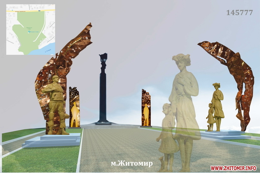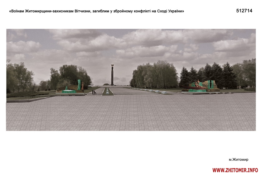 У коментарі Житомир.info головний архітектор міста Юрій Безбородов уточнив, що проект-переможець конкурсу на кращу скульптуру загиблим воїнам АТО біля меморіалу Слави реалізовувати не будуть, бо учасників АТО та родини загиблих не влаштовує обрана локація.