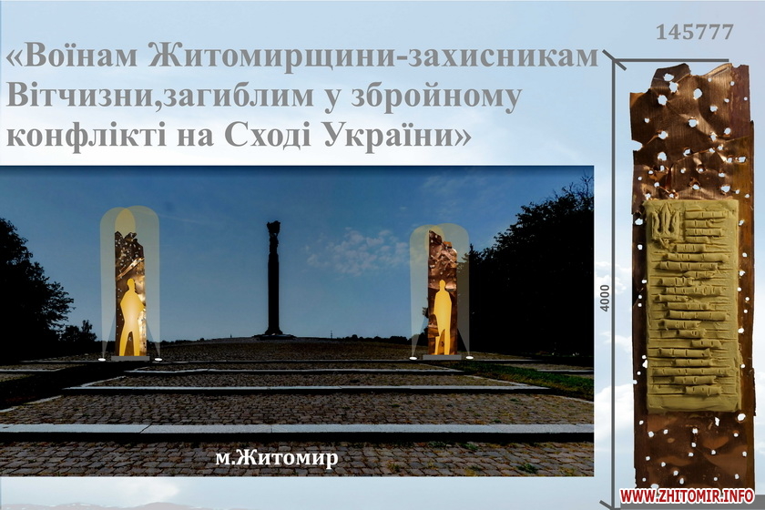 «За рішенням виконавчого комітету Житомирської міської ради від 1 серпня 2018 року № 786 проведено відкритий конкурс на кращу скульптурну композицію «Воїнам Житомирщини - захисникам Вітчизни, загиблим у збройному конфлікті на Сході України». Конкурс було проведено у два тури. Визнані кращими в І турі три пропозиції допущені до участі в ІІ турі конкурсу», - йдеться у повідомленні.