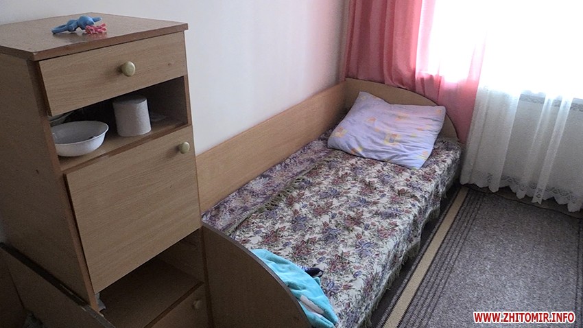 «Так склалось, що на даний час батько (дитини), чоловік за кордоном. Немає житла, точніше є, але там інша сім’я живе, сестра, і я не змогла там лишитися і змушена була звернутися сюди. Мені тут легше набагато морально. Щодо харчування я не скаржусь. Мене тут все влаштовує, доволі непогані умови, тепло, чисто. Я у спокійній атмосфері, моя дитина у спокійній атмосфері», –розповідає клієнтка Житомирського обласного центру соціально-психологічної допомоги Анна.