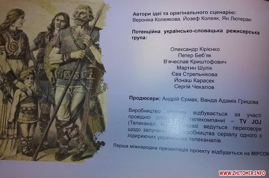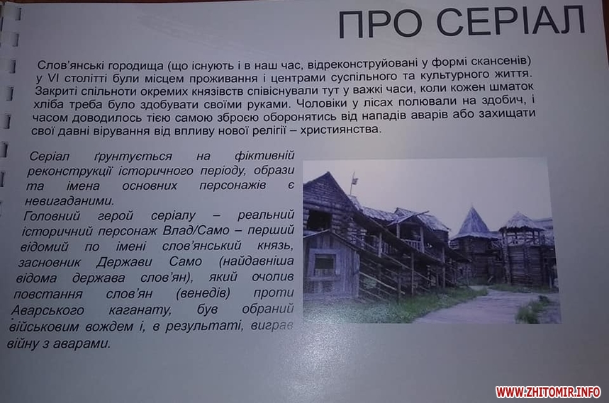 «На Житомирщині будуть знімати історично-пригодницький українсько-словацький серіал «Слов'яни». Найбільше сцен відзнімуть поблизу нашого села Городське, де біля річки буде збудовано старовинне слов'янське селище. До масових сцен режисери планують залучати й місцевих жителів. Зйомки будуть тривати аж до кінця осені», – йдеться у дописі Інни Величко.