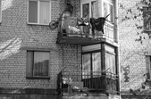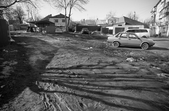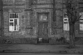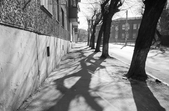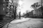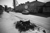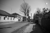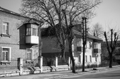 Цей фоторепортаж побудований на контрасті: сонце і тінь, чорне і біле, старе і нове. Лютневе весняне сонце й не до кінця висохлі обочини. Голі дерева, які відкидають химерні тіні. Брудні автомобілі і сонячні зайчики на їх склі. Старезні двоповерхові будинки з відреставрованим житлом. Сусідство старих і нових балконів, пластикових і дерев’яних вікон.