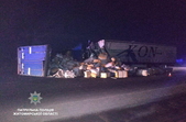 «Дорожньо-транспортна пригода за участі трьох великогабаритних вантажівок сталась увечері 19 лютого на ділянці автодороги Виступовичі–Житомир–Могилів-Подільський у Житомирському районі. Внаслідок ДТП постраждали двоє керманичів», - йдеться у повідомленні.