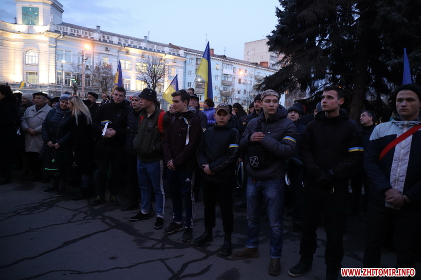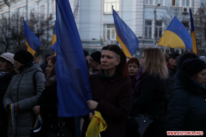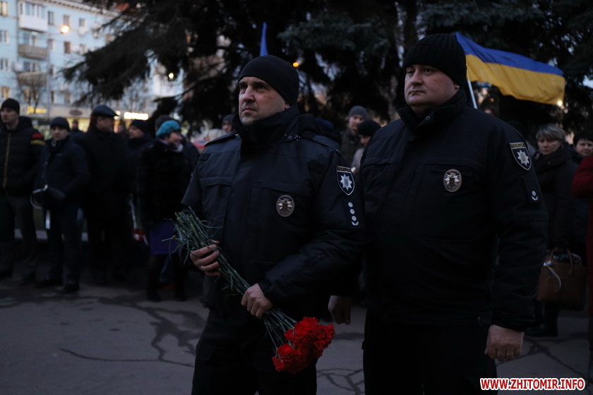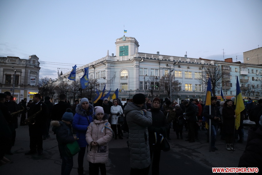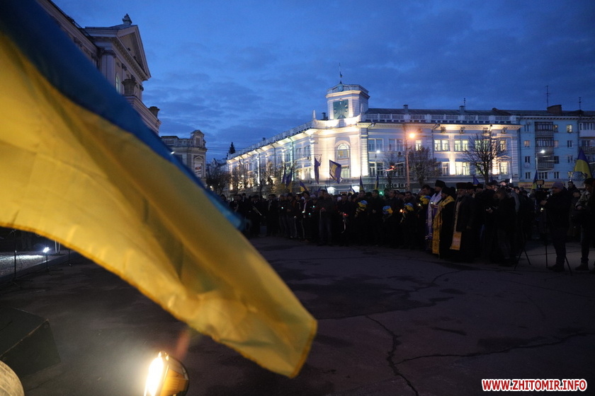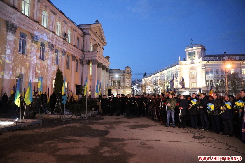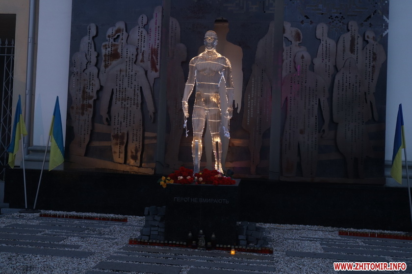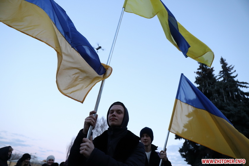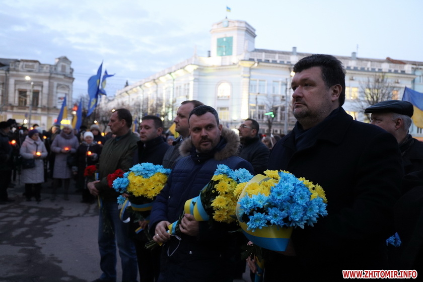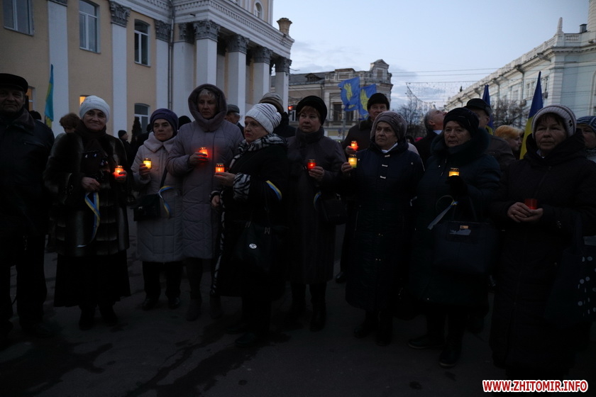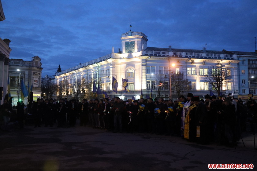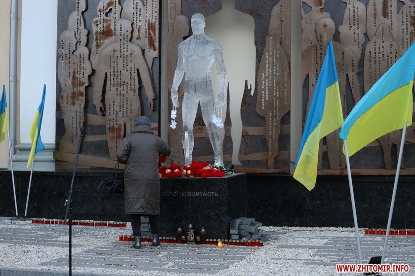 Надвечір 20 лютого на майдан Корольова у Житомирі привезли шини, дошки та запалили бочку – символічне нагадування про події 5-річної давнини. Близько 17.00 тут почали збиратися житомиряни, які прийшли згадати події Революції Гідності та пом’янути Героїв Небесної сотні.