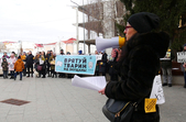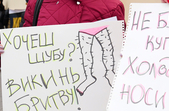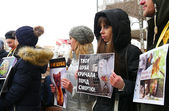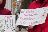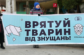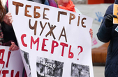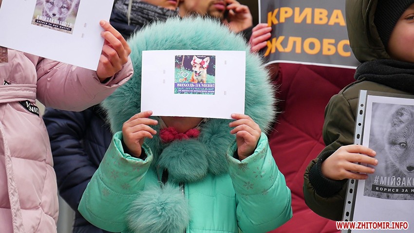 «Наші гасла: «Твоя шуба перед смертю кричала», «Знімай хутро назавжди», «Давайте зупинимо криваве вбивство», «Житомир - це не помийна яма». Адже це брудне виробництво (ред., хутряні ферми). Якщо вам не шкода тварин, то подумайте про ці відходи, які забруднюють нашу з вами екологію», - додає член ГО «Житомирська міська організація захисту тварин» Юлія Невмержицька.