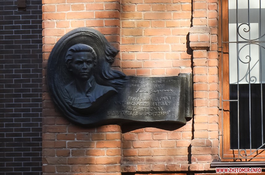 У Житомирі пам’ять про відому землячку увіковічнили в назві однієї з вулиць міста. Саме на цій вулиці, у будівлі за номером 15, розташоване приміщення музичної школи №4, на якому встановлена меморіальна дошка геніальній дочці українського народу Лесі Українці. На ній, поряд з портретом поетеси, зазначено, що Леся Українка відвідувала Житомир у 1880-1890 роках.