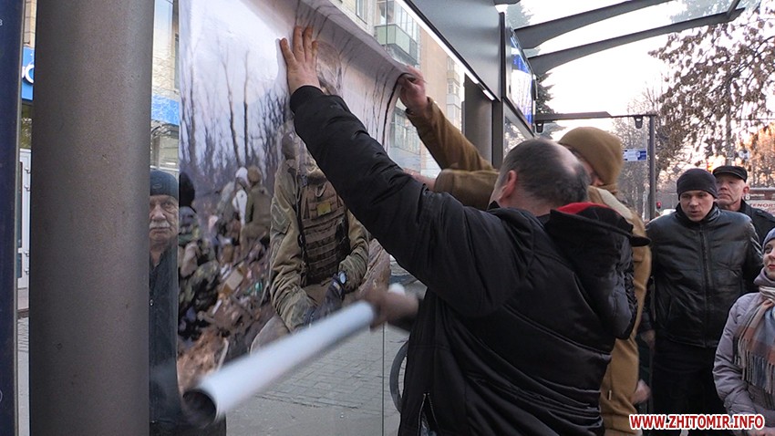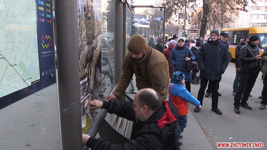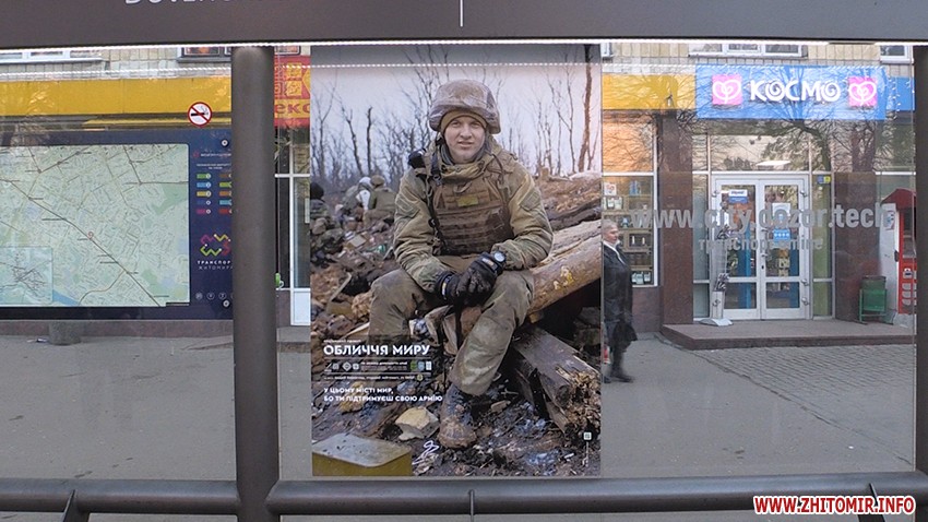На зупинці Довженка в Житомирі відновили плакат з фотографією військовослужбовця Андрія Верхогляда, що висів там у рамках соціального проекту «Обличчя миру». Посприяли цьому волонтери, ветеранські організації та, власне, самі військовослужбовці. Останні згадують, як минулого тижня двоє невідомих зірвали зображення, і шукати хуліганів взялися чи не усім містом спільно із правоохоронцями. Нині волонтери тішаться, що одного із хуліганів поліція вже затримала.