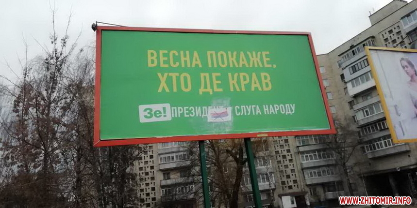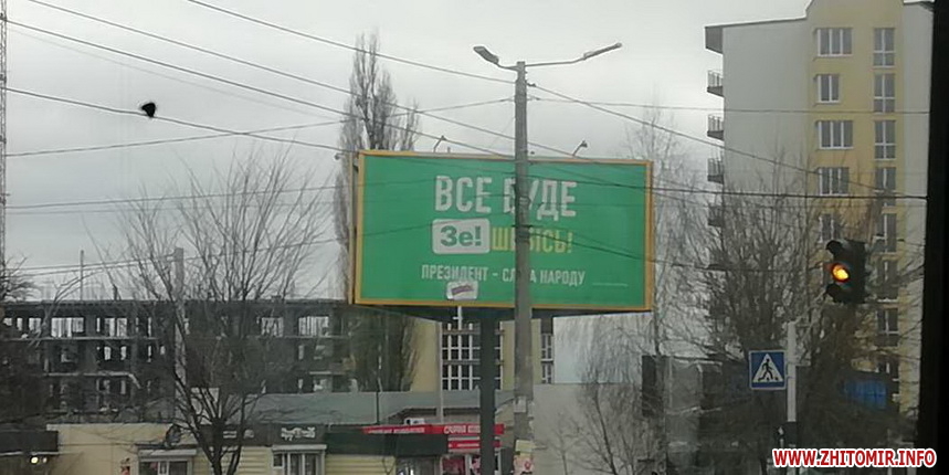 Нагадаємо, 27 лютого у центрі Житомира майже десяток рекламних сітілайтів з агітаційними матеріалами кандидата в президенти Володимира Зеленського заклеїли російською символікою.