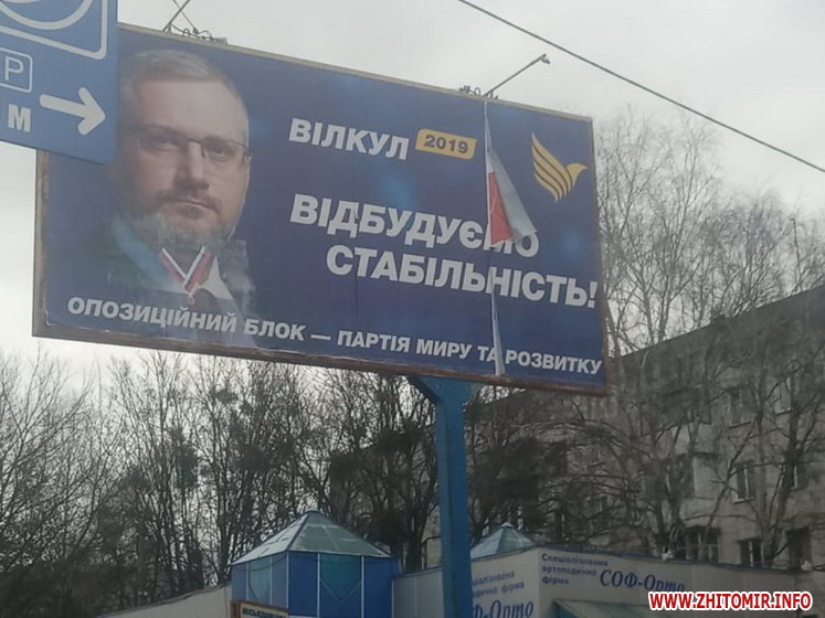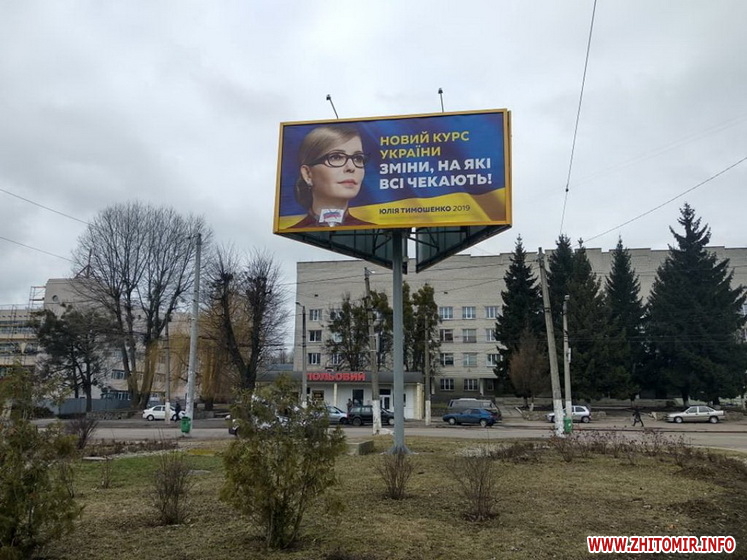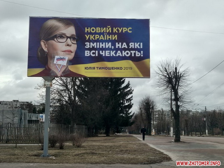 Прес-служба Громадянської мережі ОПОРА в Житомирській області також інформує про зафіксовані 27 лютого пошкоджені агітаційні білборди та сітілайти кандидатів на пост президента Володимира Зеленського, Юлії Тимошенко та Олександра Вілкула.