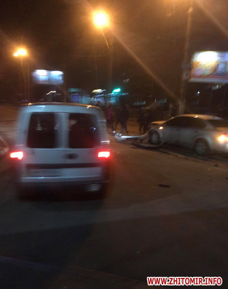 У Житомирі близько 20:20 четвертого березня сталася дорожньо-транспортна пригода за участі трьох автомобілів.