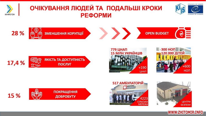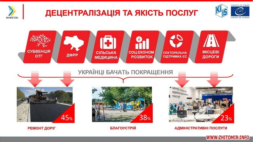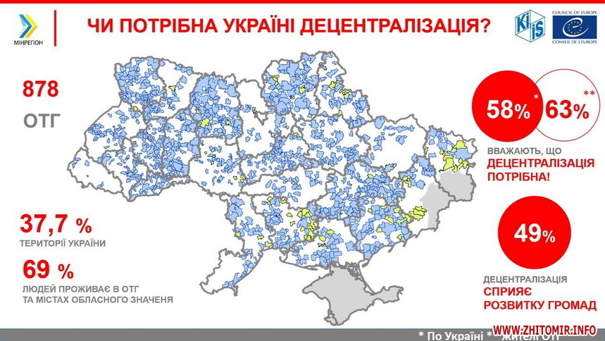 Як повідомляв Житомир.info, в лютому 2018 року були оприлюднені результати дослідження, які показали, що 58% населення України вважають потрібною впроваджувану реформу децентралізації.
