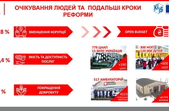 Найбільше людей — 43% розуміють реформу як передачу повноважень і ресурсів органам місцевого самоврядування. Та просто передача ресурсів на місця – не самоціль! Дуже важливо, що б ці кошти конвертувались у якість життя для людей.