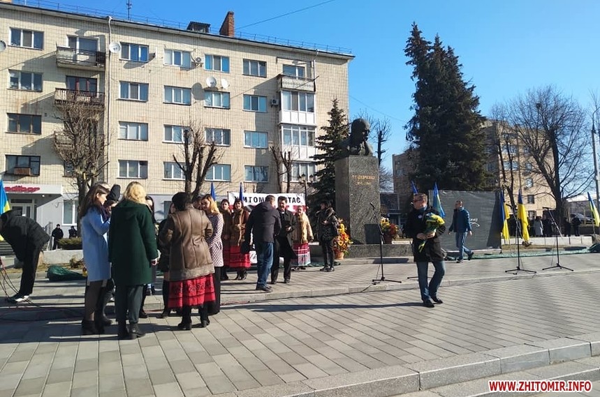 Близько 10 ранку до пам'ятника Шевченку у Житомирі почали сходитися люди, аби відзначити 205-ту річницю з дня народження Кобзаря.