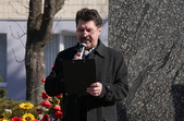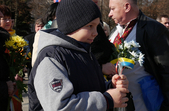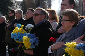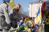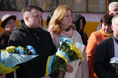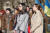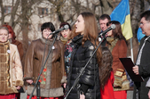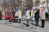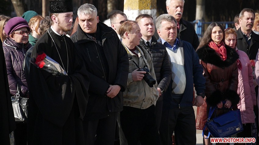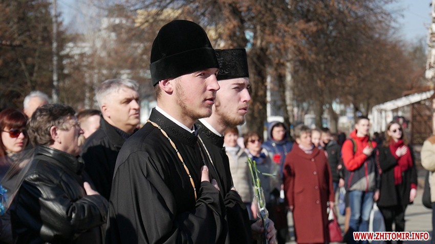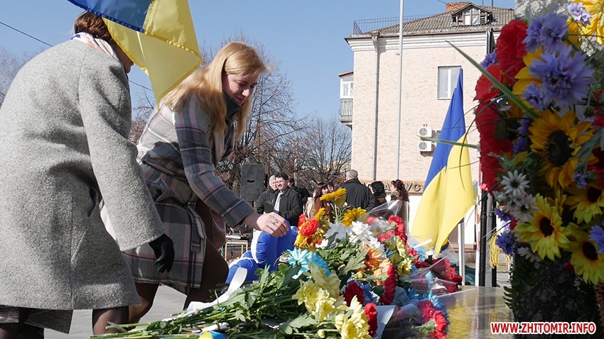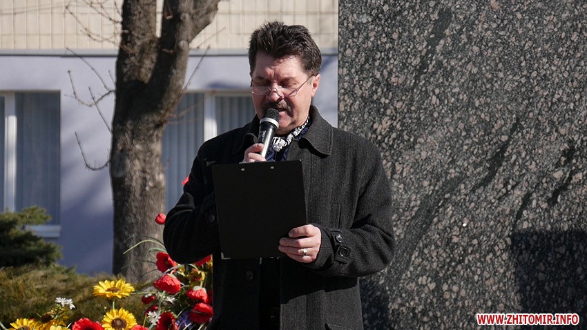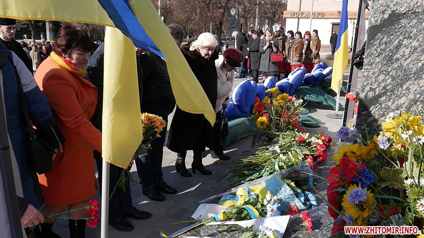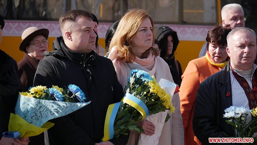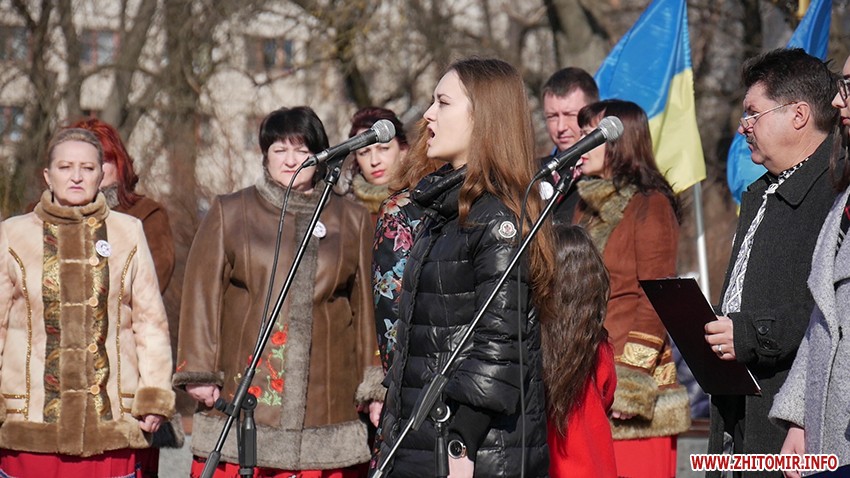 Біля пам’ятника Тарасу Шевченку в Житомирі 9 березня зібралося кілька сотень містян, аби відзначити 205-ту річницю народження Кобзаря. Розпочалися урочистості традиційно зі спільного виконання Гімну. Опісля слово взяли творчі колективи, артисти яких не лише декламували вірші видатного поета, але й співали їх. А от студенти пішли іще далі – взялися читати твори Шевченка іноземними мовами: англійською, німецькою та французькою.