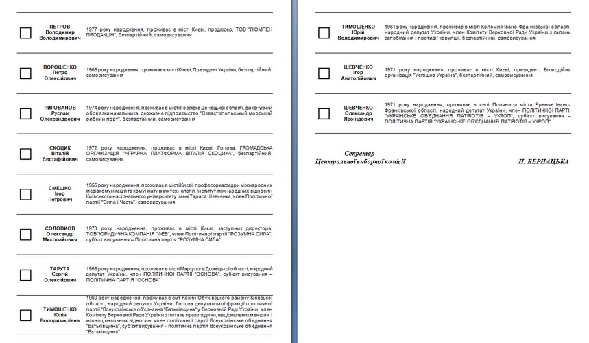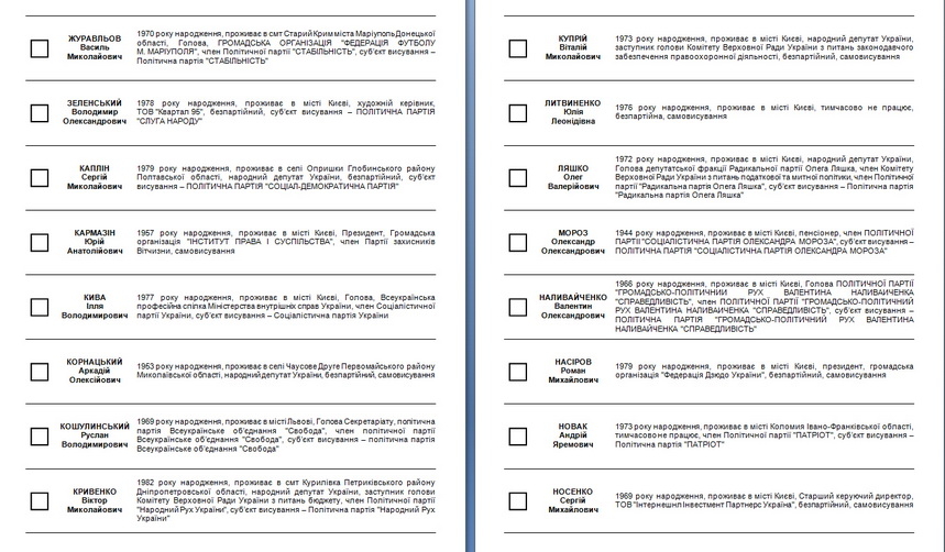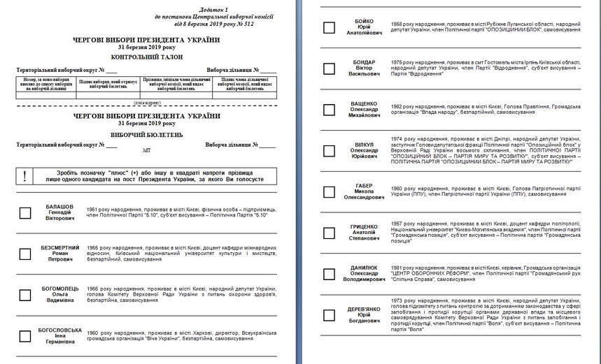На черговому засіданні Центральної виборчої комісії 8 березня затвердили форму і текст виборчого бюлетеня на виборах президента України 31 березня 2019 року.