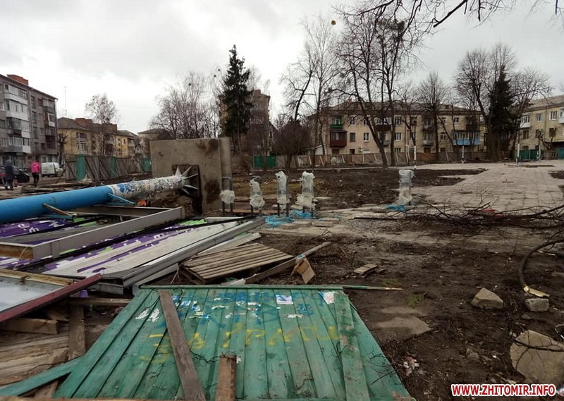 Термін реконструкції двічі переносили: у листопаді 2018 – на грудень 2018, у грудні 2018 - на травень 2019 року «через документально підтверджені об’єктивні обставини». Що зробили у житомирському сквері на Лятошинського за два осінні місяці 2018 року - дивіться тут.