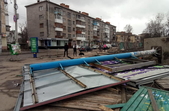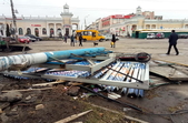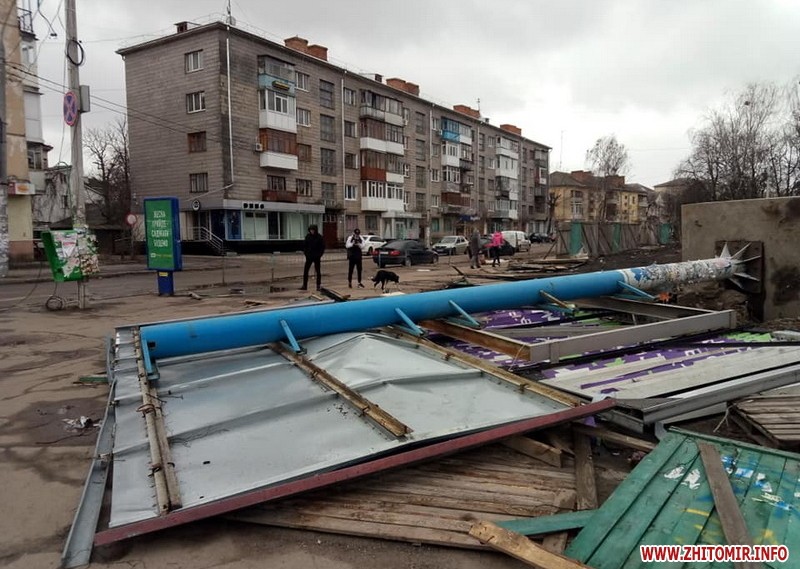 Через сильний вітер по обіді 11 березня в Житомирі почали ламатися і падати білборди.