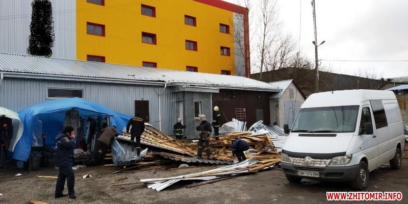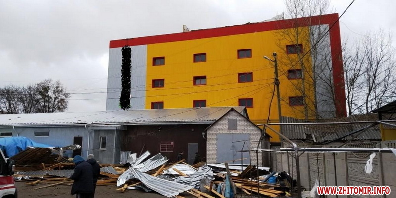 У прес-службі управління ДСНС в Житомирській області розповіли, що дах зірвало з технічного приміщення будівлі магазину «Фуршет».