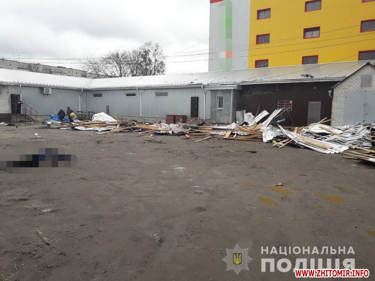 11 березня близько 12.30 до Коростишівського відділу поліції надійшло повідомлення про травмування двох жінок, жительок райцентру, частиною покрівлі торговельного об’єкту. Одна із потерпілих загинула на місці, іншу терміново госпіталізовано.