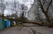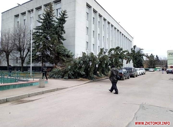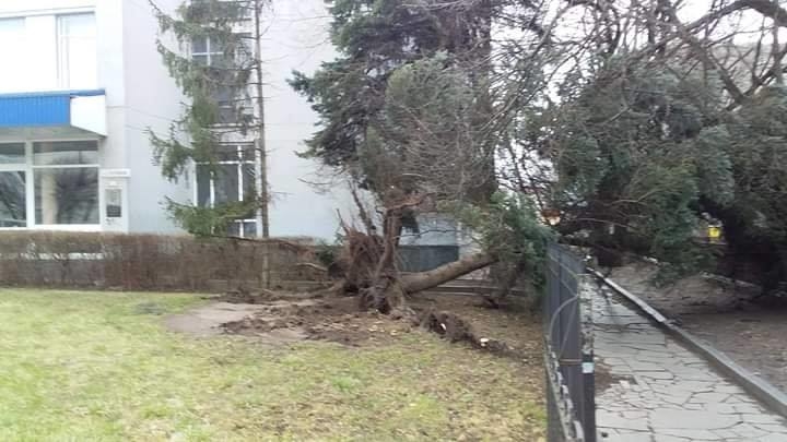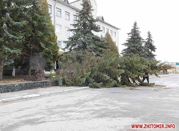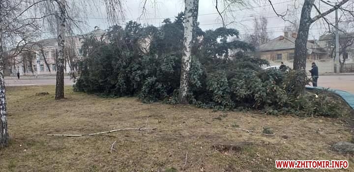 Біля телецентру вітер вирвав з коренем і повалив ялину (ФБ-група Нефайний Житомир):