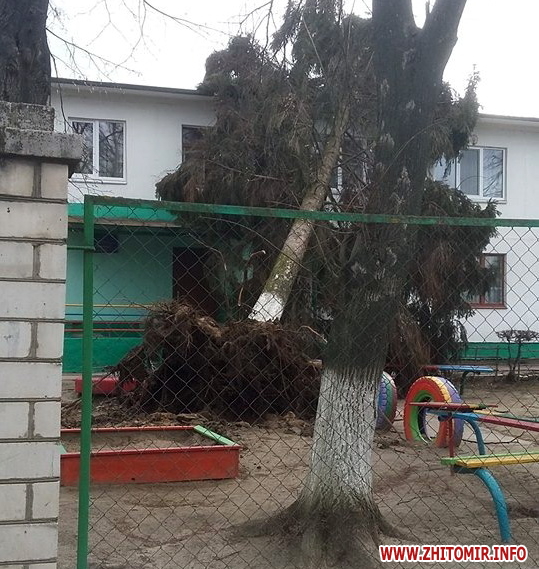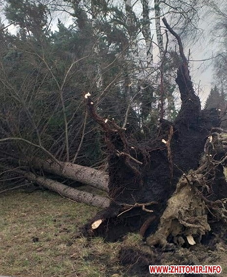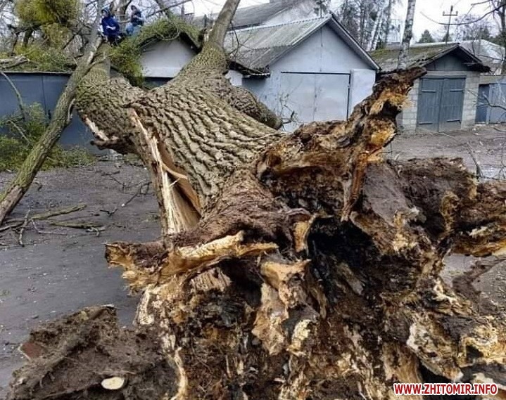 Житомирська область 11 березня продовжує страждати від потужного холодного вітру, який уже наробив чималого лиха. Станом на 15 годину стало відомо про нові факти пошкоджень, спричинених буревієм. Так, стихія трощить дахи й паркани, валить стовпи, вивертає з коренем дерева та перевертає холодильники біля крамниць.