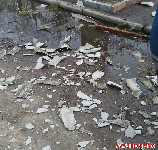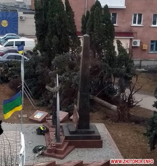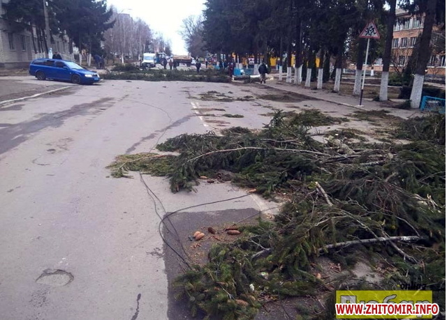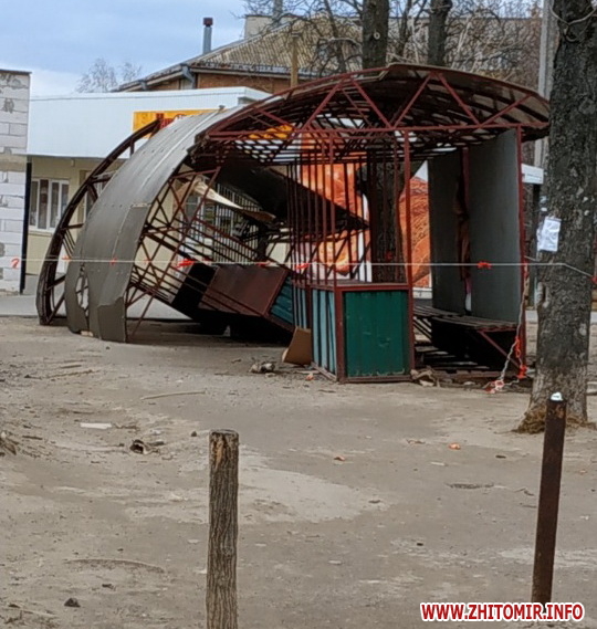 Як повідомляв Житомир.info, по обіді 11 березня у Житомирі почали падати білборди: у сквері на Лятошинського рекламну конструкцію вітер «вивернув з коренем». У Коростишеві вітер зірвав дах торговельного павільйону: одна жінка загинула, інша потрапила до реанімацію.