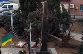 Біля села Піски вітер звалив дерево на пам’ятник невідомому солдатові (фото читача):