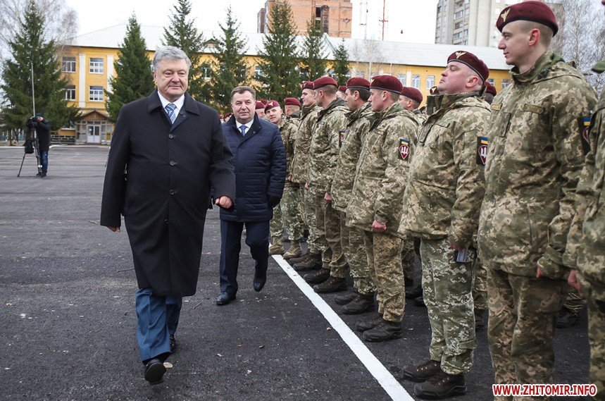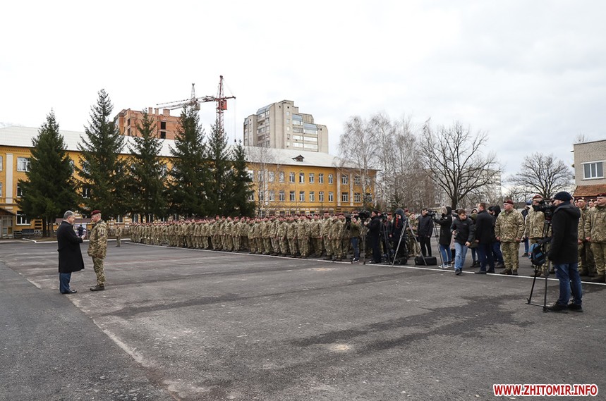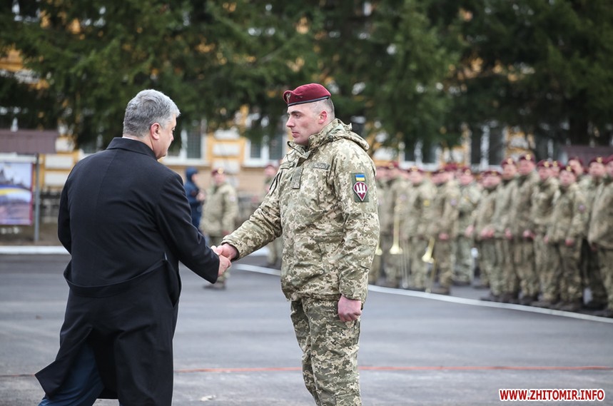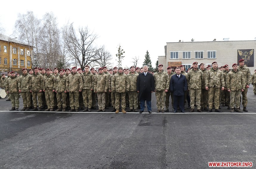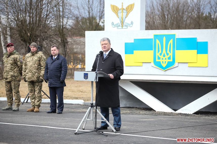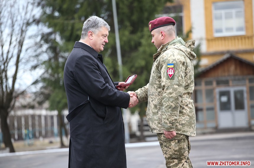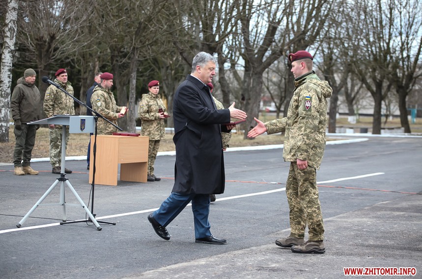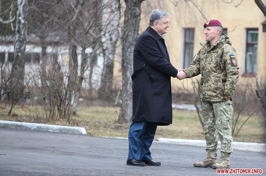 У рамках робочої поїздки до Житомира 11 березня президент Петро Порошенко відвідав місце дислокації 95-ї окремої десантно-штурмової бригади Збройних Сил України.