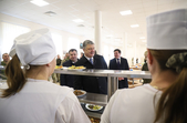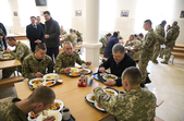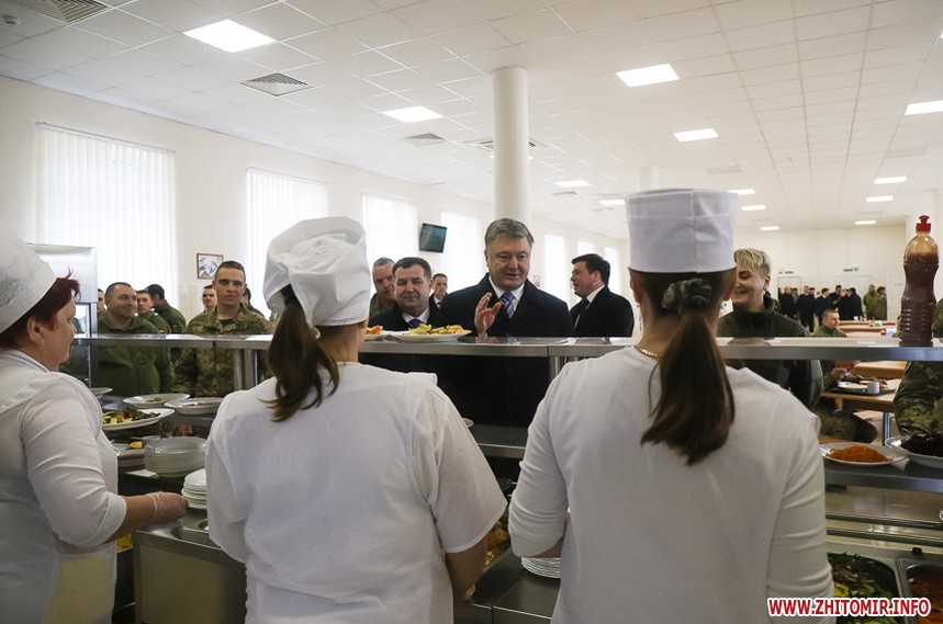 На плацу Порошенко після короткої промови вручив військовим державні нагороди, а потім оглянув приміщення одного з чотирьох нових гуртожитків та поспілкувався із військовослужбовцями, які будуть в них жити. Також президент відвідав їдальню та скуштував обід разом з військовими.