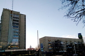 На 12-поверхівці в центрі Житомира 11 березня шквальний вітер зірвав рекламний банер, який не могла демонтувати інспекція з благоустрою.