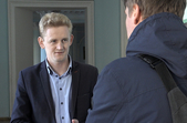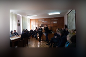 Щонайменше кілька десятків співробітників Житомирського трамвайно-тролейбусного управління вранці 13 березня зібрались в кабінеті керівника підприємства Євгенія Демчика. Усі вони прийшли, щоб поспілкуватись із мером Житомира та депутатами міської ради. Сергій Сухомлин розповів, про що йшлося на зібранні та назвав журналістам основні проблеми, які міська влада бачить у роботі підприємства.