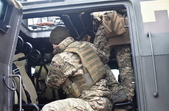 Після цього у танковому вогневому містечку воїнами-десантниками була практично перевірена броня та захисне скло бронеавтомобіля «Козак-2». Зокрема, військовослужбовці вели по машині вогонь з автоматів, снайперської гвинтівки та кулемету Калашникова з різних відстаней. Результат – позитивний.