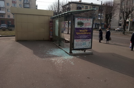 На вулиці Покровській у Житомирі невідомі розбили скло на зупинці громадського транспорту, що на перехресті з вулицею Львівською.