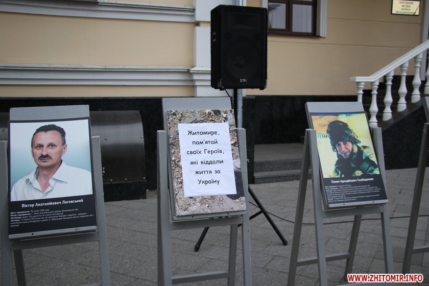 «З 17:00 на вулиці Михайлівській пам’яті українських добровольців присвятили фото-виставку «Суворі будні АТО» та фотосушку «ФОТО З ПЕРЕДОВОЇ». Житомиряни та гості міста, серед яких багато і молодих людей, прийшли на головну пішохідну вулицю після роботи, щоб згадати та підтримати тих, завдяки кому Україна відстояла свою Незалежність», - йдеться у повідомленні.