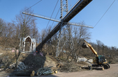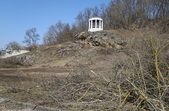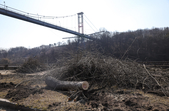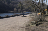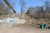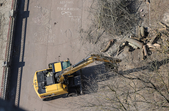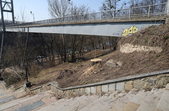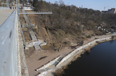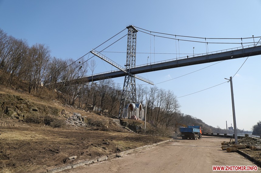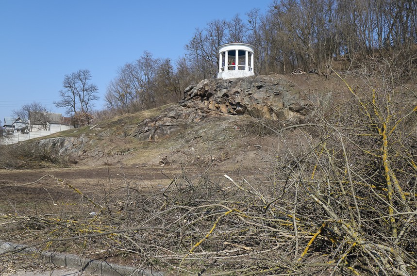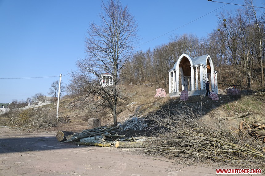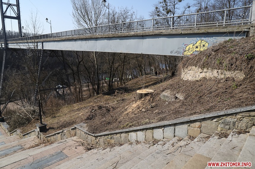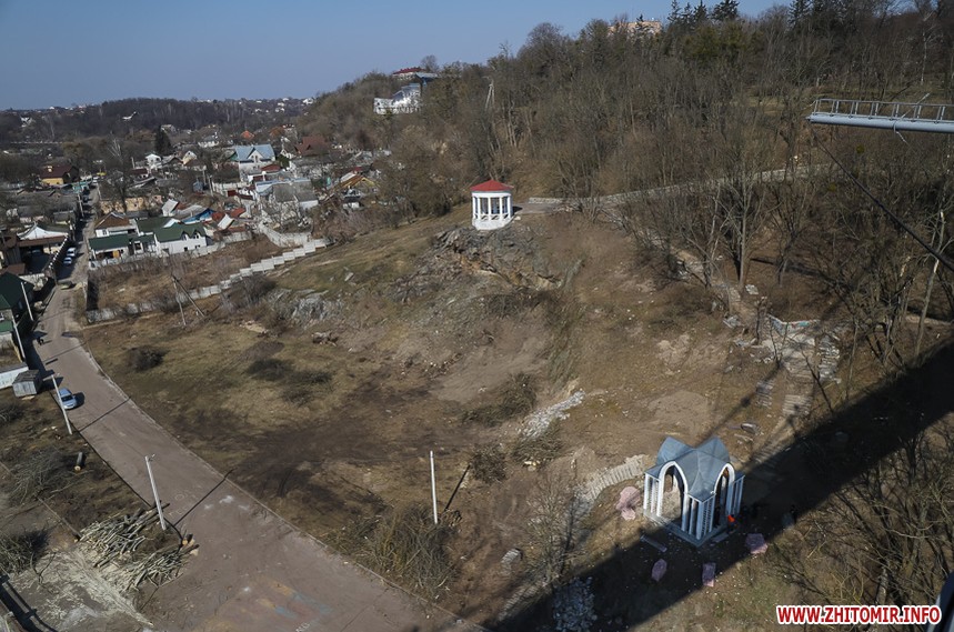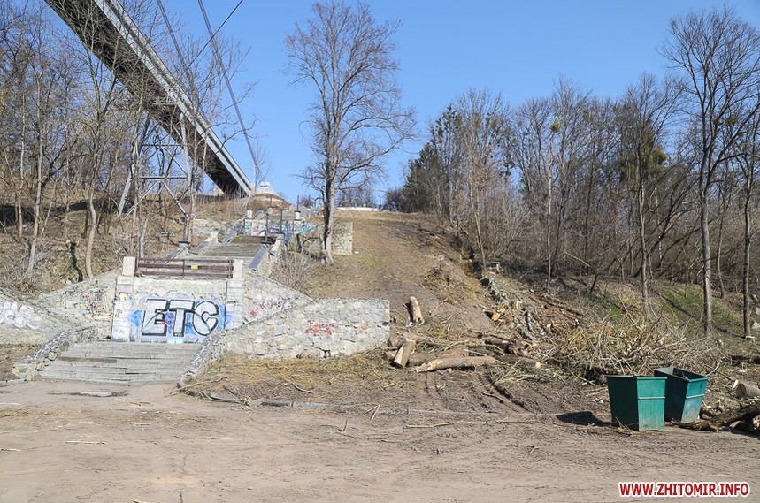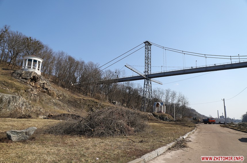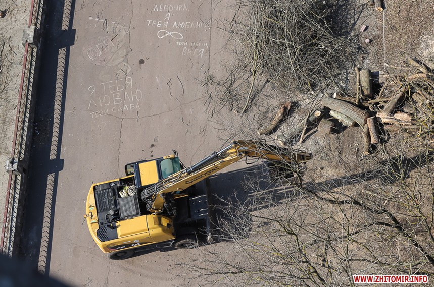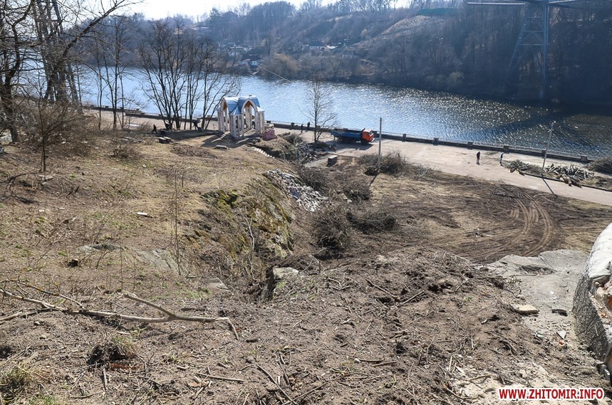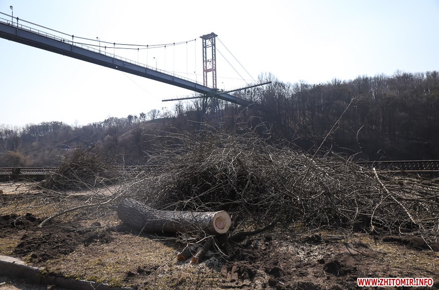 Під пішохідним мостом нині працює техніка. Вже зрізали десятки дерев, розчищають чагарники, розбирають стару плитку на пішохідних доріжках та східцях. Розпочались роботи і в старих альтанках.