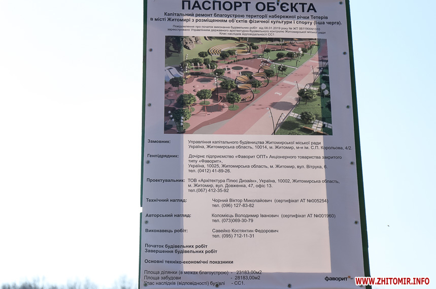Нагадаємо, восени 2018 року у Житомирі провели тендер на І чергу реконструкції набережної річки Тетерів з облаштуванням об’єктів фізичної культури і спорту. Очікувана вартість закупівлі спершу становила 33,7 млн грн. Згодом в тендерну документацію вносились зміни та коригувалася ціна. Наприкінці грудня 2018 року управління капітального будівництва Житомирської міськради уклало договір з переможцем торгів ДП «Фаворит ОПТ» ЗАТ «Фаворит», яке зобов’язалось здійснити реконструкцію набережної за 16,4 млн. грн.