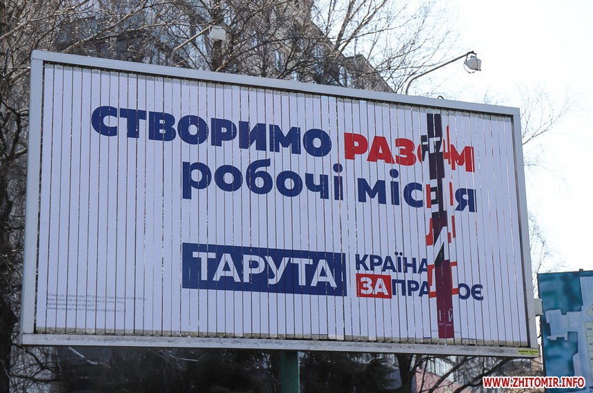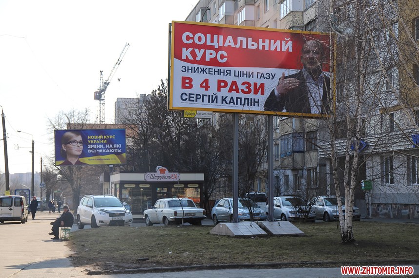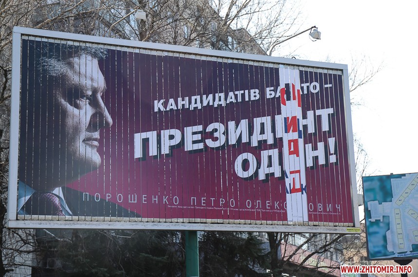 Українці 31 березня обиратимуть нового президента з 39 кандидатів. Крім реклами у засобах масової інформації та в інтернеті, претенденти на пост президента активно агітують за себе за допомогою зовнішньої реклами.