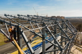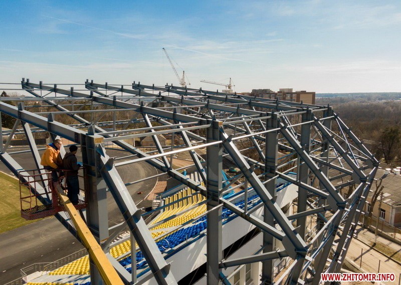 Центральний стадіон «Полісся» – це наймасштабніший проект ДФФР у Житомирській області. Будівельні роботи тривають – вже встановили 70% металоконструкцій під накриття та монтують освітлення.