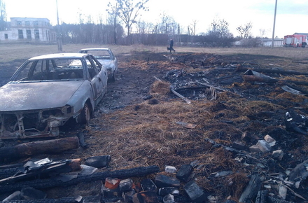 «20 березня 2019 року на пункт зв’язку 16 державної пожежно-рятувальної частини міста Радомишль о 13 год. 53 хв. поступило повідомлення про те, що в с. Ставки по вул. Гагаріна, 23 а, горить господарча споруда. На гасіння пожежі було направлено одне відділення 16 ДПРЧ. Прибувши до місця пожежі, рятувальники встановили, що вогнем охоплено господарчу споруду, сінник та два легкових автомобіля. Внаслідок пожежі було знищено у гр. Василенко Н. Г. (пенсіонерка, 1935 р. н.) господарча споруда, сінник, у гр. Романівського О. В. 2 легкових автомобілі: DAEWOO ESPERO та DAEWOO ESPERO 2.0. На момент ліквідації о 15 год 31 хв. вдалося врятувати житловий будинок та господарчу споруду гр. Василенко Н. Г., які знаходилися поруч», - йдеться у повідомленні.