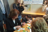 Перша леді разом з особливими дітьми розмалювала панчішку, вирізану з паперу, та придбала пару кольорових шкарпеток.