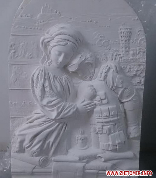 Координатор проекту в Житомирі, волонерка Марія Уланова розповіла Житомир.info, що Олександра Артющенко (Стакан) – це керівник проекту в Україні і координатор майстерні у Василькові Київської області. Ікона пам'яті – це досить великий гіпсовий барельєф вагою 7-9 кг. На ній Україна-мати обіймає воїна, якого вже немає на Землі. Автор проекту Олена Карамушка - скульптор, українка, яка з 1992 року живе в Італії.