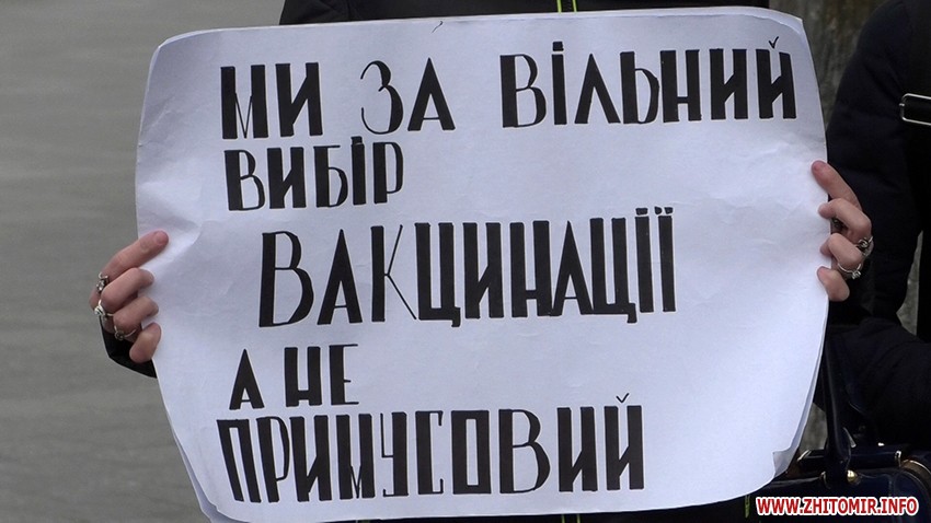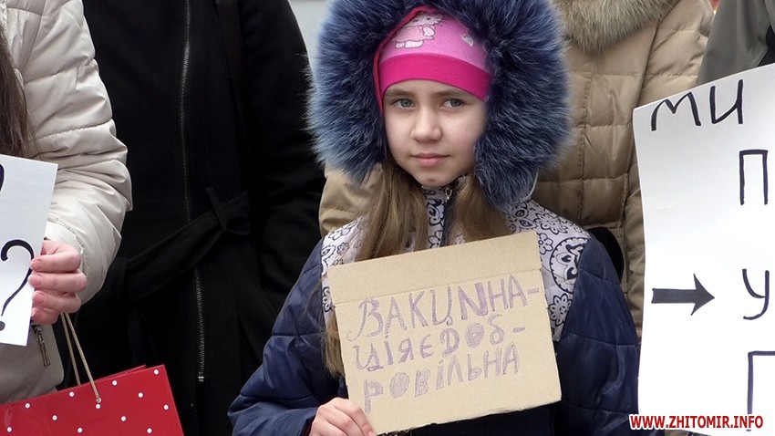 У Житомирі, біля міської ради, 25 березня вчетверте пройшла акція «Дітям – вільний доступ до освіти», що зумовлена забороною допуску нещеплених дітей до навчання. Традиційно, учасники мирного мітингу висловлювались проти примусу до вакцинації, наполягаючи на праві вільного вибору.